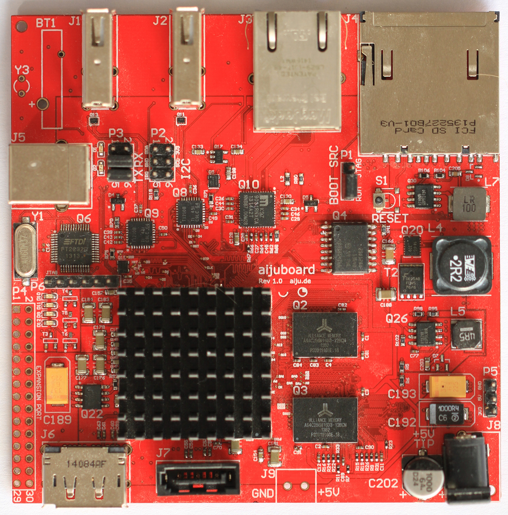 The aijuboard (the name is tongue-in-cheek) is a single board computer built around the Xilinx Zynq-7000 combined system-on-chip and FPGA. It is probably the most complicated circuit board I have ever designed, with over 300 components, including three BGA chips and many tiny 0402 components. Doing DDR3 on a four layer board was a particular challenge.
